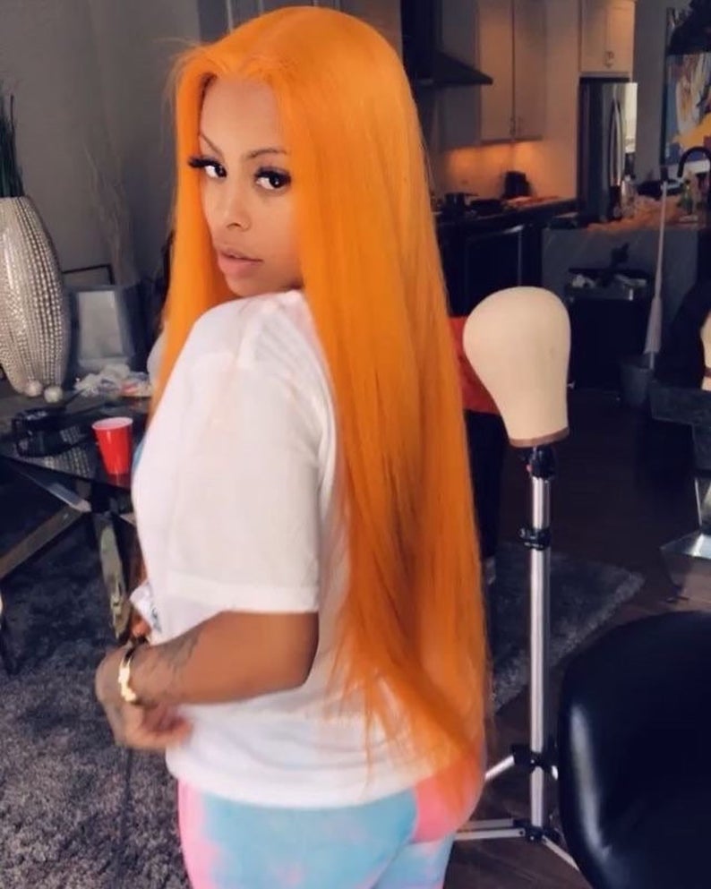 Remy long straight orange ginger wig