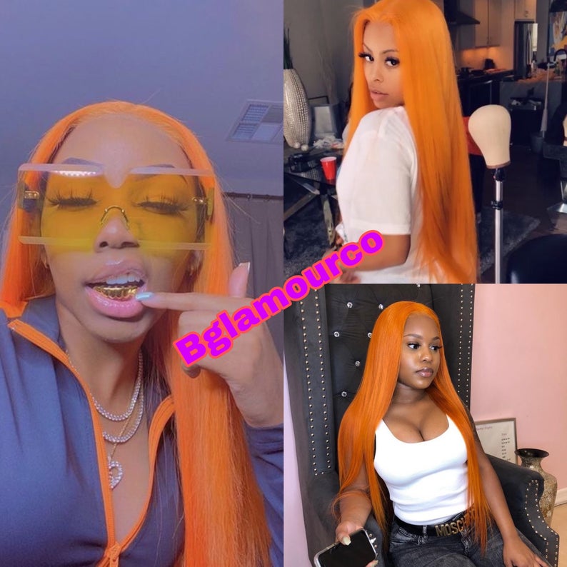 Orange Ginger Colored Lace Closure Human Hair Wig Pre Plucked Brazillian Straight Lace Wigs 150% Remy Hair 4x4 lace closure