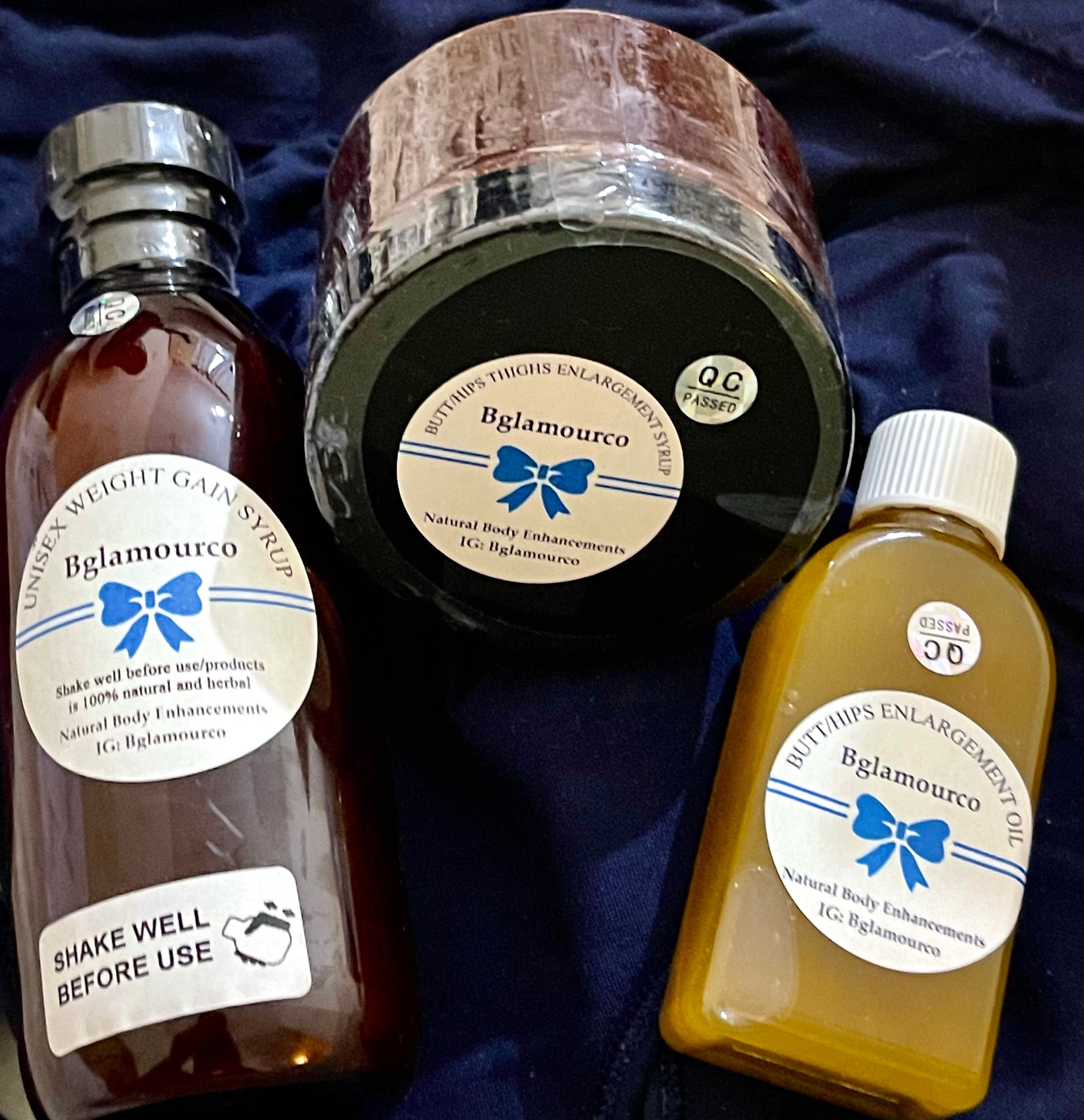 This package is mostly for slim people, makes you gain a healthy nice weight. Pair this with more booty growing products! This herbal combo is made to grow your butt hips thighs and no face or stomach fat will be gained