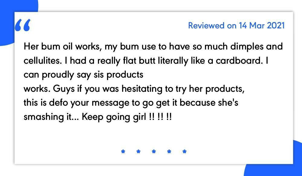 Chew half a teaspoon of butt hip thigh syrup and follow up with water in the morning, take 2 table spoonsthe weight gain syrup before 4 pm, massage the butt oil for 2 mins or until well absorbed everything morning and night